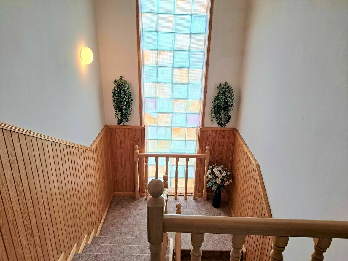 na drugą kondygnację prowadzą niezależne schody naturalnie doświetlone przeszkleniem.