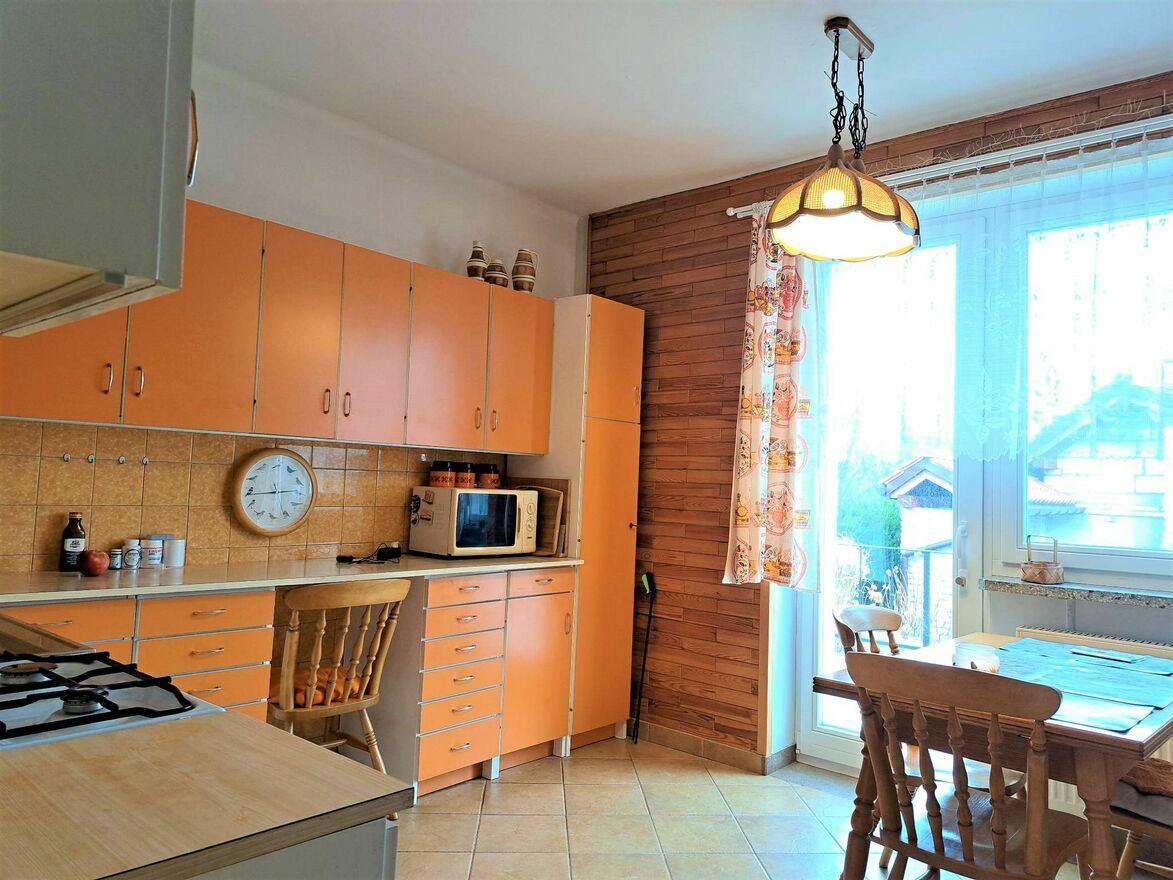 Piętro to duży dobrze doświetlony salon z dostępem do balkonu, połączony poszerzonym przejściem do sąsiedniego pomieszczenia do którego możliwe jest niezależne wejście z korytarza, oddzielna łazienka, oddzielne WC, sypialna, oraz pomieszczenie nad kuchnia które obecnie spełnia funkcję sypialni ale również można adoptować je jako oddzielna kuchnia.